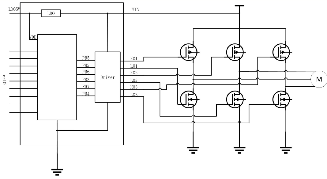 Built-in a 16-bit advanced timer with 3 PWM outputs, all of which have asymmetric dead zone complementary outputs, a 32-bit general-purpose timer, a 16-bit general-purpose timer, and a 16-bit basic timer.