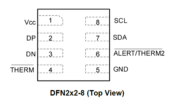 The PJ85451 is a 2 channels (1 remote channel + 1 local channel) digital temperature sensor. Temperature data can be read out directly via digital interface (compatible SMBus and I2C with speed up to 400 kHz) by MCU, Bluetooth Chip or SoC chip. Each chip is specially calibrated ±1.0°C (Max.) accuracy for both remote and local channel over 0°C to 85°C temperature range in factory before shipment to customers. It includes a high precision band-gap circuit, a 12-bit analog to digital converter that can offer 0.0625°C resolution, a calibration unit with non volatile memory, and a digital interface block. It has a feature of series resistance cancellation for remote channel. It also has non-ideality factor correction feature for remote channel by programming register. Available Package : DFN2x2-8 package.